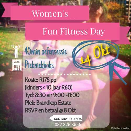 Saterdag, 14 Oktober is dit Fun Fitness dag vir die vroue!!